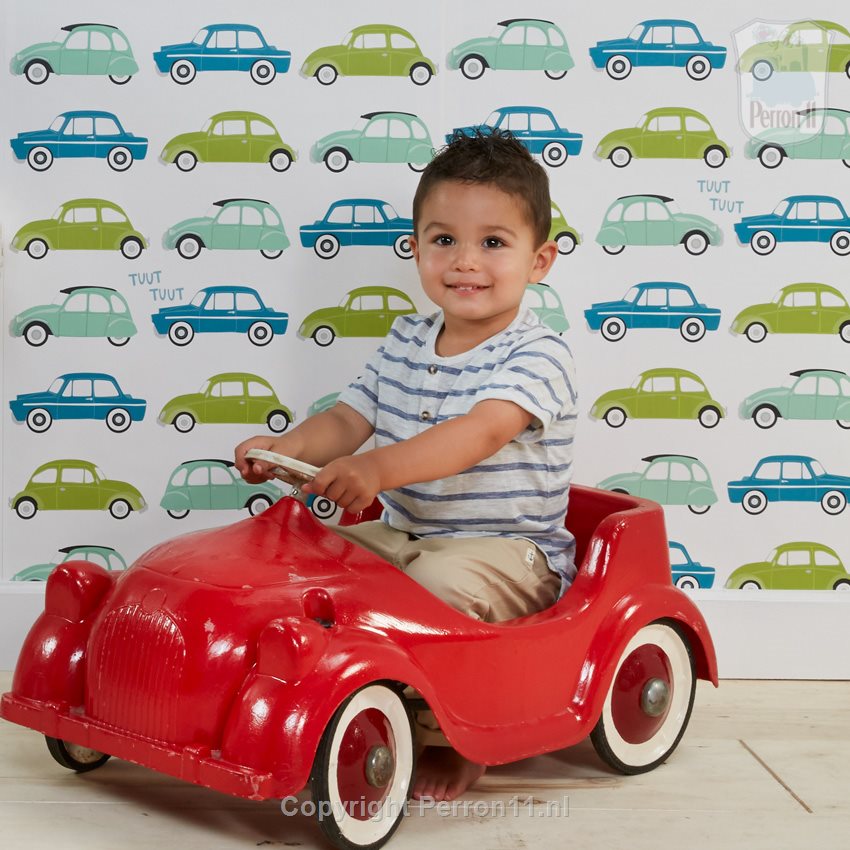 Dit kinderbehang met leuke retro auto’s is een echte eye-catcher in de kinderkamer. Is jouw zoon ook helemaal gek van auto’s? Dan valt dit stoere behang Auto vast bij hem in de smaak! Je zoon kan op het behang van alles ontdekken: sommige auto's toeteren "tuut-tuut" en andere eigenwijze auto's rijden stiekem een andere kant op. Op het auto behang staan verschillende soorten auto’s afgebeeld: de grappige Volkswagen Kever, het ouderwetse Dafje en de “lelijke” Eend. Van dit leuke behang heb je jarenlang plezier, want ook voor wat grotere jongens is dit autobehang zeer geschikt!
