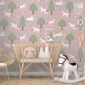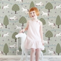 Jouw paardenmeisje vindt dit behang met paarden Happy Horses vast geweldig in haar kamer. Op het behang staan verschillende paarden en veulens die heerlijk tussen de bomen over de velden galopperen. Sommige paarden liggen samen met hun veulen even lekker uit te rusten aan een riviertje. Op dit paarden behang staan allerlei subtiele details die je pas ontdekt als je lang genoeg naar het behang kijkt. Het behang met paarden is verkrijgbaar met een zacht mintgroene achtergrond (groen) en met een oud roze achtergrond (roze). Op een rol paardenbehang zitten 4 gescheiden banen van elk 270 cm hoog x 50 cm breed. Daarmee behang je dus een stuk wand van maximaal 270 x 200 cm (hxb). Elke volgende rol sluit uiteraard naadloos aan. Wil je een lambrisering maken van dit paardenbehang? Bestel dan een speciale rol voor lambrisering. Daarop zitten 8 banen ven elk 135 cm hoog en 50 cm breed. Eén paardje is ongeveer 12x15 cm (hxb).