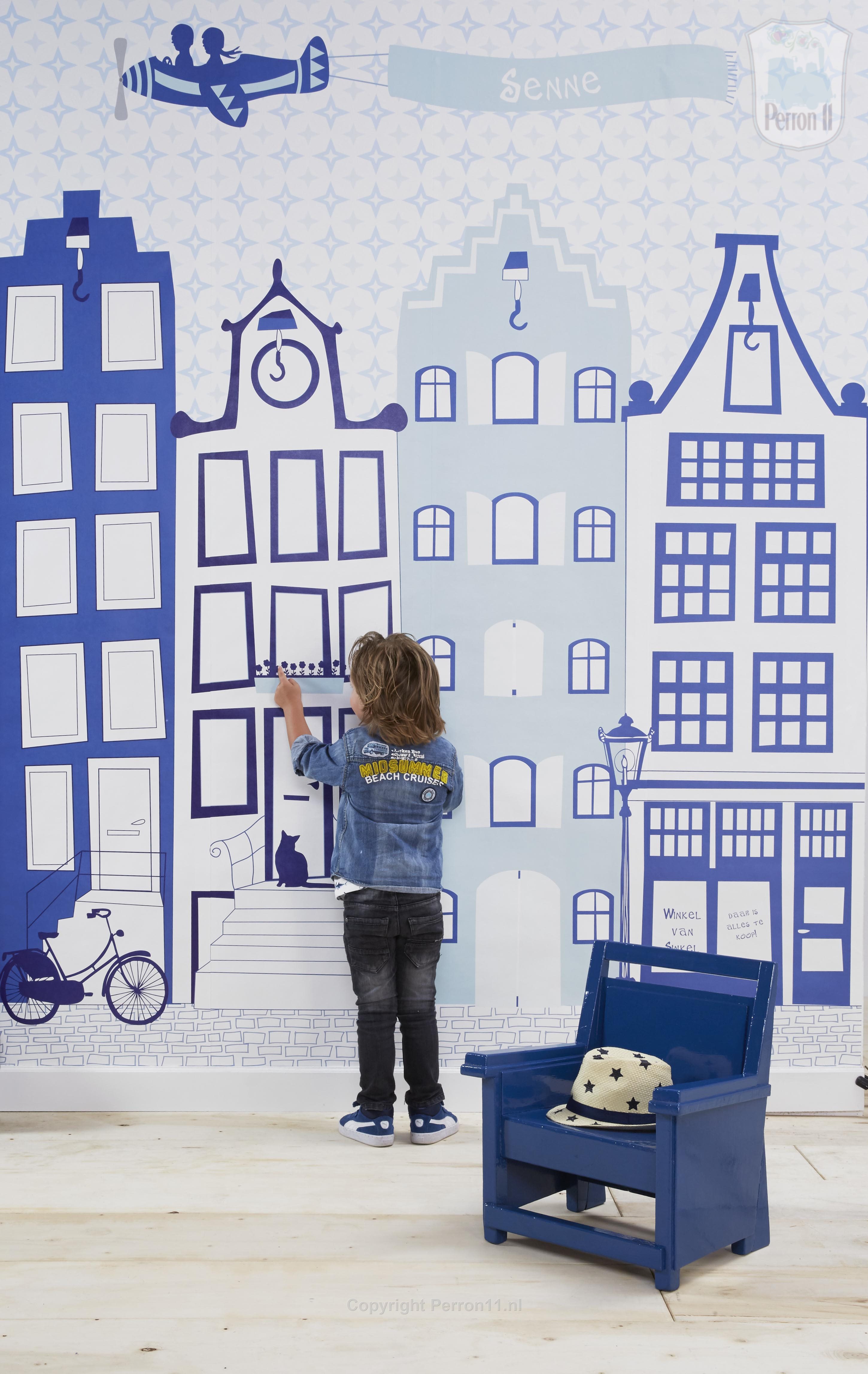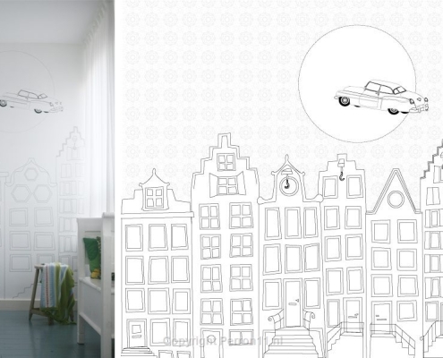 Maatwerkproject: grachtenpandjes behang met eigen huis