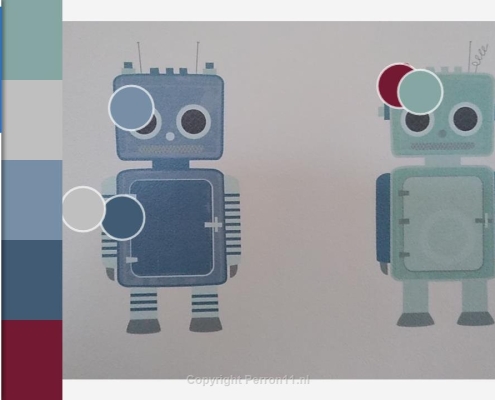 "Ik heb al een aantal verfkleuren uitgezocht voor in de kinderkamer, maar ik vind ook een van jullie behangpatronen zo leuk. Alleen heeft dat andere kleuren. Kun je de kleuren van het behang misschien…