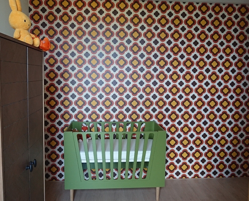 Maatwerk behang kinderkamer. Kijk mee in deze mooie retro babykamer!