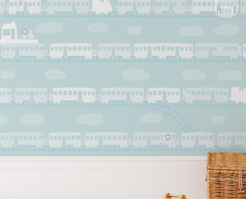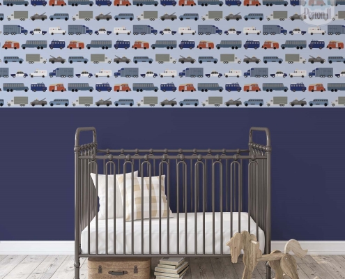 Een mooie manier om niet de hele wand te behangen, maar wel de kinderkamer op te fleuren met een opvallend printje, is een combinatie maken van een (geschilderde) lambrisering met daarboven…