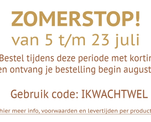 Van 5 t/m 23 juli 2023 zijn wij gesloten. Onze klantenservice is dan telefonisch niet bereikbaar en er vindt tijdelijk geen productie van behang, muurstickers, wandcirkels en andere artikelen plaats. Bestel…