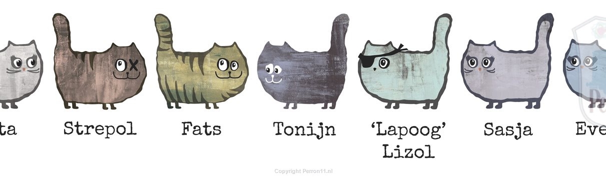 Mag ik jullie voorstellen aan een paar nieuwe behangfiguren: de straatkatten Fats en zijn vrienden! Ze waren er al als patroonbehang, maar vanaf 19 november zijn ze ook verkrijgbaar als losse behangfiguren van circa 32 x 32 cm.