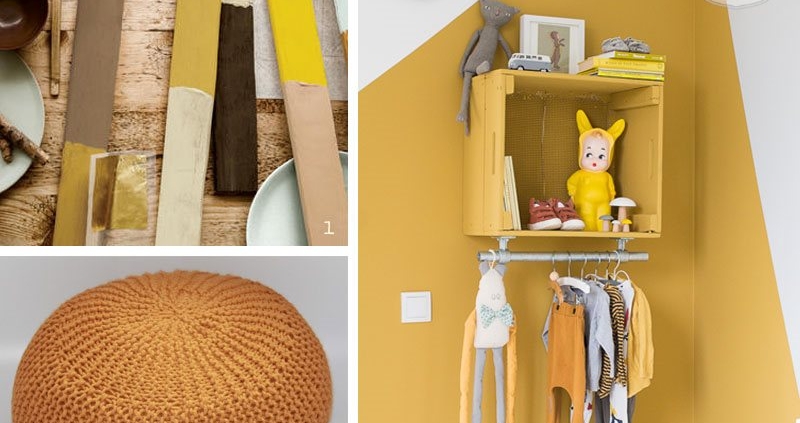 Vind je goud op je muur net iets teveel van het goede, dan kun je je ook volop uitleven met goudkleurige of okergouden accessoires. Met een paar lampen, een fijne plaid, gezellige kussentjes of een paar mooie foto- of spiegellijstjes als blikvangers tover je elke kamer in no-time om tot een warm en gezellig plekje Of ga eens op zoek naar een okergoud meubel zoals een krukje of een stoel. Er is genoeg keus anno 2016! Zo vonden wij bij Poefenzo een super leuke gebreide okergouden poef (afbeelding 3). Staat mooi in je woonkamer, maar ook erg leuk voor op de kinderkamer! Maak je graag iets zelf? Op het fijne interieurblog &SUUS vonden we een ontzettend leuk okergouden hangkastje om eenvoudig zelf te maken (afbeelding 2). Ook vind je er leuke tips om okergoud in de kinderkamer toe te passen. Zeker een bezoekje waard dus!