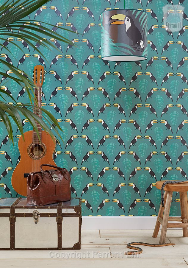 Dit toekanbehang past perfect bij ons toekan lamp , sierkussentjes !