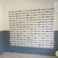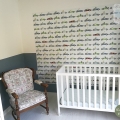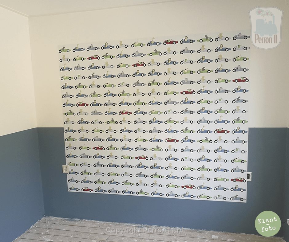 Je zoon vindt een hele muur met dit race-autobehang vast heel cool! Maar wil je je jongenskamer iets rustiger houden? Dan kun je ook met één rol drie behangbanen naast elkaar plakken. Schilder de wand verder in een bijpassende kleur (tip: Denim Drift van Flexa) en je hebt een prachtig en kleurig Formule 1 accent in de kamer! Of maak een vierkant van behang middenop de wand, waarbij je om het behangvierkant een stuk muur vrijlaat. Zo maak je het nog wat rustiger. Op de klantfoto zie je hoe een van onze klanten dit idee toepastte en dat ook nog combineerde met een geschilderde lambrisering in Denim Drift van Flexa. Hoe tof is dat? Meer tips hoe je met een behang met (wat drukkere) print toch een rustige babykamer kunt creëren, vind je op ons blog.