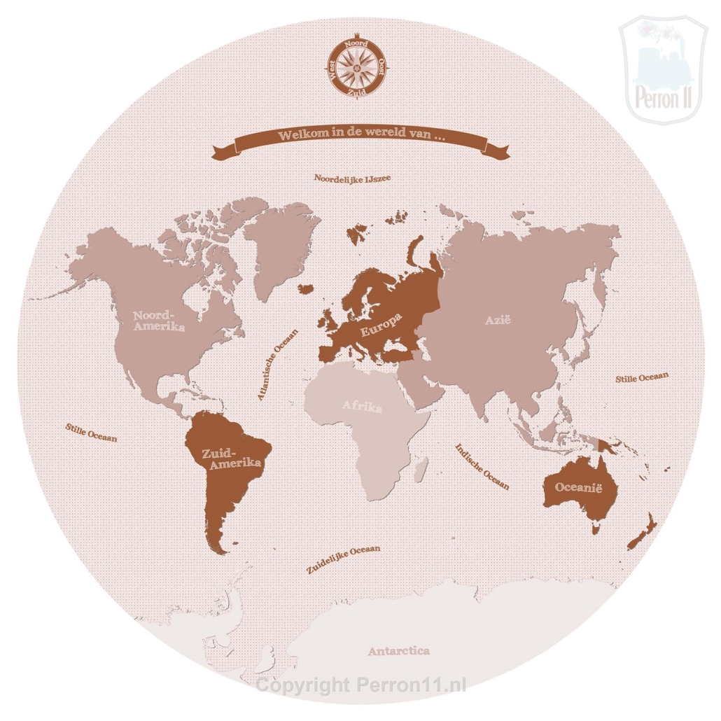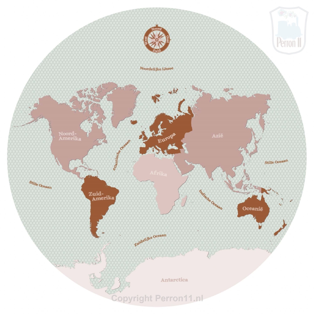 Deze behangcirkel wereldkaart in blauw-groen of roze en roest tinten is supertof voor de kinderkamer. Kies zelf welke achtergrond je wilt. Ook kunnen we een banner toevoegen met de naam van jouw kind of een persoonlijke spreuk. Bovendien bepaal je zelf de maat en het materiaal waarop we hem drukken. Wil je een ronde muursticker, behangcirkel of een 3D-wandcirkel? Met deze wereldkaart wandcirkel kan het allemaal. Ontdek hieronder alle mogelijkheden.