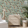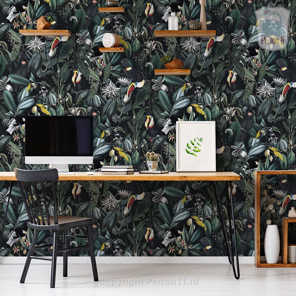 Dit bloemenbehang is verkrijgbaar in drie verschillende kleuren: (gebroken) wit, groen en zwart. De kleuren van de bloemen zijn op alle drie hetzelfde, alleen de achtergrondkleur is anders. Kies je voor de gebroken witte achtergrond, dan haal je een lekker fris en vrolijk bloemenbehang in huis. Het bloemenbehang met de groene achtergrond geeft vooral rust met een vleugje vrolijkheid aan de kamer. De zwarte achtergrond geeft het bloemenbehang een wat mysterieuze uitstraling, wat je wand extra bijzonder maakt. Bang dat de kamer daarmee te donker wordt? Dat valt reuze mee, zeker als je de andere wanden in een lichte kleur schildert. Zelf heb ik het zwarte bloemenbehang in mijn werkkamer en ik ben er erg blij mee! Een wand heb ik groen geschilderd, de twee andere wanden heb ik wit gelaten. Heel sfeervol!