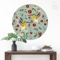 Helemaal van nu: een wandcirkel. Bij dit behang past de wandcirkel Kolibri helemaal perfect. Hoe leuk is het om die op een andere wand op te hangen? Zo maak je een mooie geheel van de kamer. Of je hangt hem boven het behang, als je dit bloemenbehang als lambrisering gebruikt.