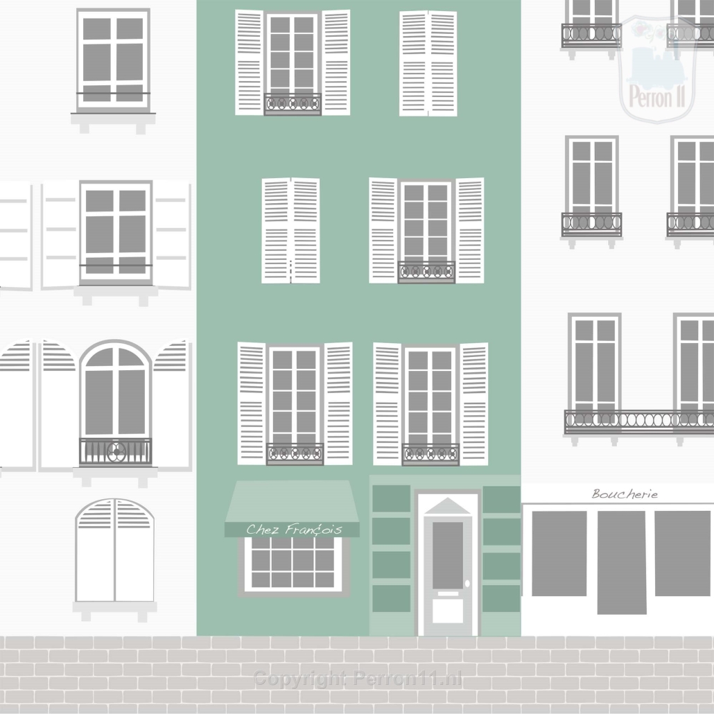 Met dit behang Parijs op de kamer leert jouw kind meteen een beetje Frans. Op de winkeltjes staat namelijk Boulangerie, Patisserie, épicerie, Chez François, Boucherie, Charcuterie en Pharmacie. Maar het restaurantje Chez François kunnen we natuurlijk ook bijvoorbeeld Chez Anna of Chez Wessel noemen. Net hoe jouw dochter of dochter heet! Want hoe leuk is het als jouw kind straks een Frans restaurantje op het behang vindt dat naar hem of haar is vernoemd?