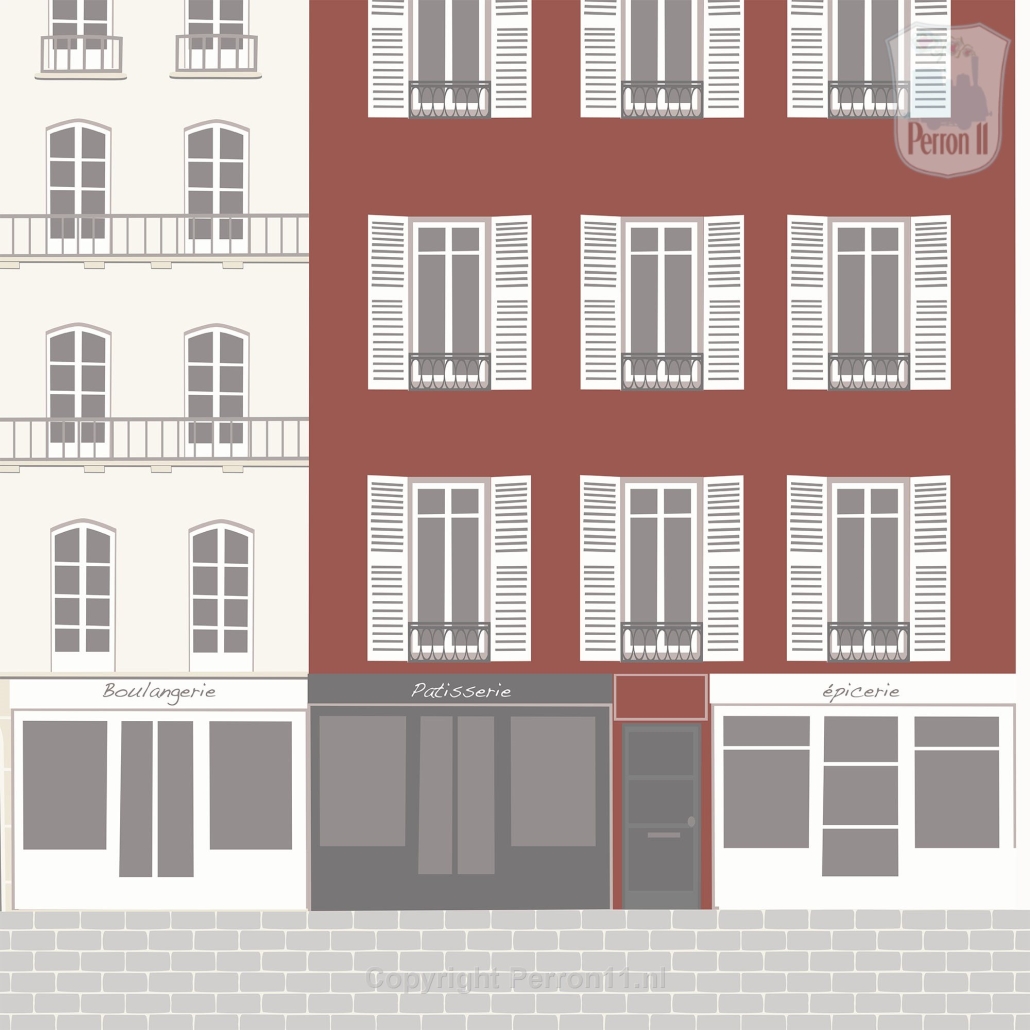 De andere huisjes zijn creme, gebroken wit en roodbruin / steenrood. Ook staan er verschillende grijstinten op het behang. Wil je liever een andere kleurstelling? Dat kan ook! Vink dan bij je bestelling het vakje 'aangepaste kleur' aan, dan passen we de kleuren van jouw behang Parijs aan aan jouw specifieke kleurwensen.