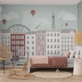 Het behang van de stad Parijs met de Eiffeltoren is geschikt voor alle leeftijden. Creeer een sfeervolle babykamer, een originele kinderkamer of een hippe tienerkamer met dit behang! Op de foto's zie je dit behang met de Eiffeltoren, een reuzenrad, luchtballonnen en wolkjes en op de blauw-groene versie zie je ook nog een klimplant. Maar jij bepaalt uiteindelijk wat wel en niet op jouw eigen fotobehang Parijs komt. Liever alleen de Parijse huisjes en de Eiffeltoren? Geen probleem! Hieronder vind je alle keuzemogelijkheden.
