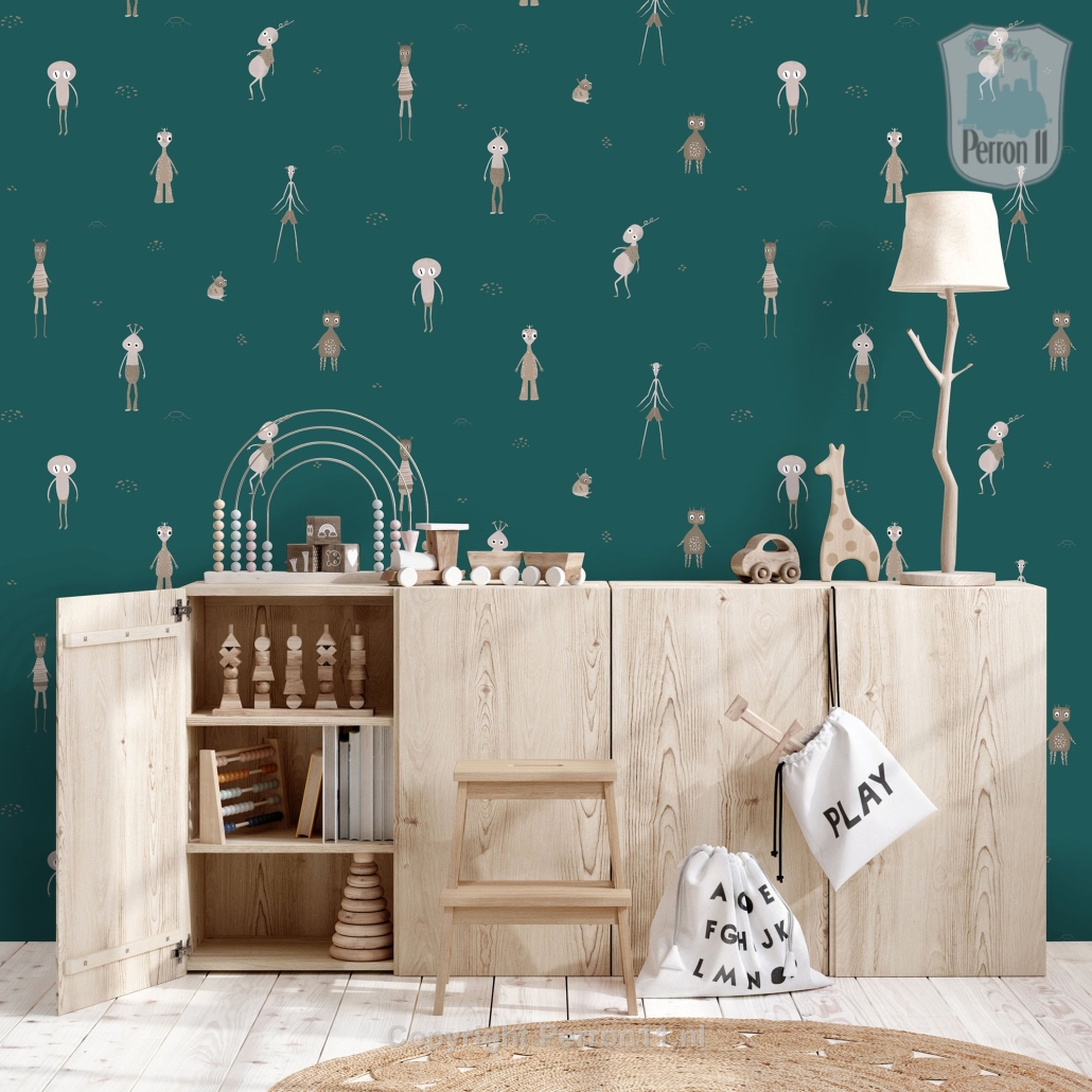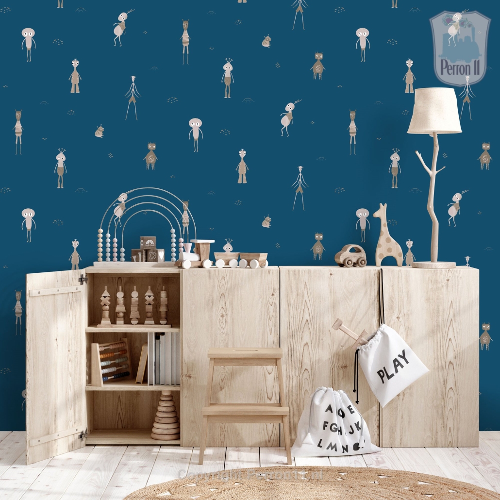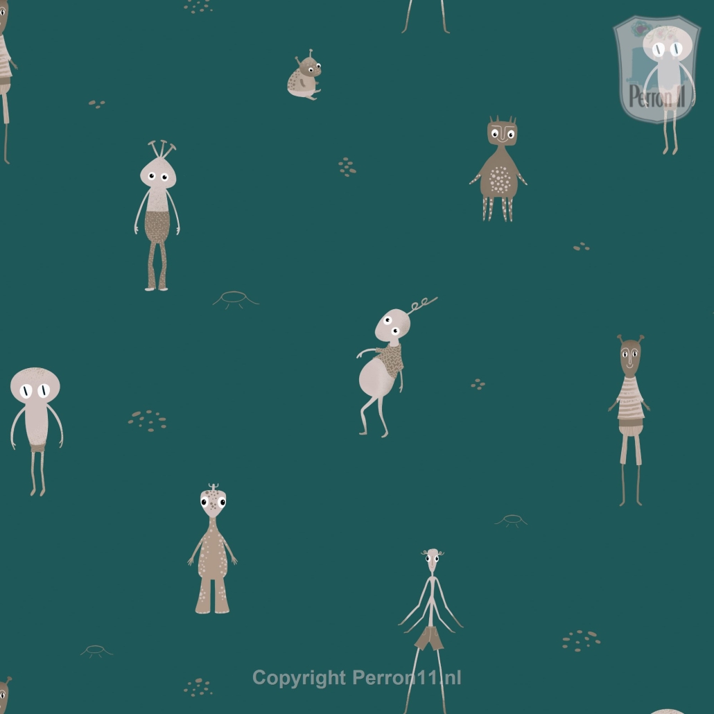 Met dit supertoffe behang met grappige aliens maak jij de kamer van je zoon supertof en lekker origineel. Want hé, aliensbehang... dat zie je niet vaak! Gelukkig zijn deze aliens alles behalve eng. Dus de meeste jongens - van peuter tot groter - kunnen ze zeker waarderen. Je kunt kiezen uit een prachtige diepblauwe achtergrond, of een mooie velvet green (groen). Op beide varianten zijn de aliens uitgevoerd in beige en bruine tinten. Dit alienbehang behoort tot onze collectie Space Stories. Daardoor kun je het desgewenst combineren met de andere behang designs en accessoires uit die collectie (zie onderaan deze pagina).
