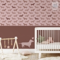 Dol op honden of teckels? Dan is dit toffe honden behang met teckels wat voor jouw kinderkamer! Het is verkrijgbaar in vier kleurstellingen: oud roze met aardetinten (roze), denimblauw met groen (blauw), mintgroene ton-sur-ton tinten (mint) en bruin met beige (bruin). Elk hondje op het behang is ongeveer 9 x 5 cm (breedte x hoogte). Op een rol zitten 4 aparte banen van elk 50 cm breed x 270 cm hoog. Met 1 rol behang je dus een vlak van 200 x 270 cm (bxh). Wil je een lambrisering maken van dit hondenbehang? Bestel dan een speciale rol voor het maken van een lambrisering.