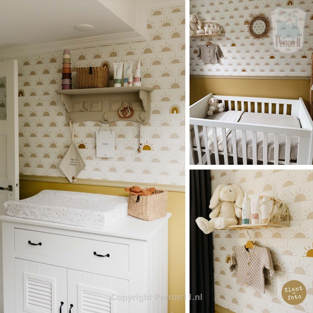 Wil je de kinderkamer nog iets meer aankleden? Combineer dit zonnetjesbehang dan met leuke bijpassende zonnetjes of regenboog accessoires. Zoals bijvoorbeeld deze bijpassende regenboog muursticker . Alle bijpassende accessoires die we op dit moment hebben, vind je onderaan deze pagina.