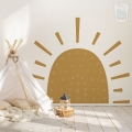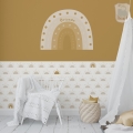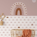 Dit kinderbehang Zon en Regenboog leent zich heel goed om te combineren met een geschilderde lambrisering. Schilder bijvoorbeeld de onderkant van de wand in een bijpassende kleur (bijvoorbeeld okergeel bij het beige behang of roestbruin bij het roze behang) en plak het behang op het bovenste gedeelte van de wand. Andersom kan ook!