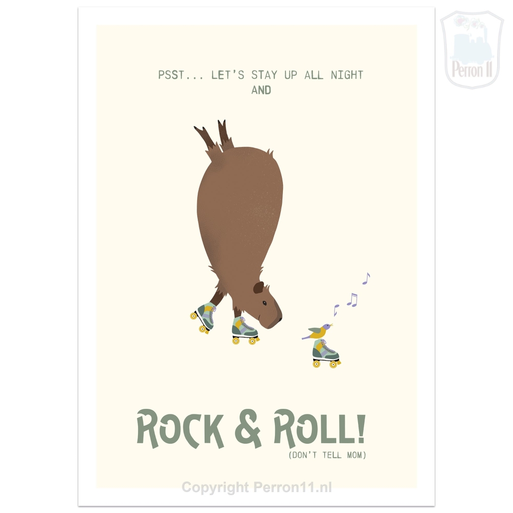 Deze kinderkamerposter met rolschaatsende capibara en zijn vriendje vogel is onderdeel van de collectie Capibara Rollerdisco. Zo kun je deze poster superleuk combineren met het behang Capibara Rollerdisco . Behang bijvoorbeeld een wand met het capibarabehang en hang deze poster op een andere wand. Of maak een mooie lambrisering van het behang en hang deze poster daarboven. Mogelijk komen er binnenkort nog meer bijpassende accessoires in deze collectie. Onderaan deze pagina zie je alle matchende producten die we momenteel* hebben. Zo maak je jouw babykamer of kinderkamer compleet!