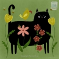 Kinderkamer poster Zwarte Kat met Bloemen en Vogel