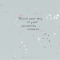 De standaard kleuren van het behang zijn grijsgroen met stippen in fel geel, roze, taupe, groen, zalm en wit. Er is ook een standaardbehang in deze serie. Toch liever een andere kleurcombinatie? Dat kan als je kiest voor de optie 'aangepaste maat en kleur'. Dan maken we graag een nieuwe versie van dit behang in jouw eigen kleuren! Ook een eigen tekst is dan desgewenst bij de prijs inbegrepen.