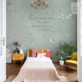 Wordt jouw dochter tiener of gaat ze naar de middelbare school, dan wordt het tijd voor een nieuw behang, nieuwe kleuren en een fijne eigen plek om huiswerk te maken, muziek te luisteren en te chatten met vriendinnen. Je kunt natuurlijk alle wanden gewoon schilderen, maar veel leuker is het natuurlijk om van één wand een mooie blikvanger te maken, bijvoorbeeld met dit stippenbehang! 'Add a little confetti each day' staat op het standaardbehang, maar kies je voor een op maat gemaakt behang, dan kun je desgewenst voor een eigen tekst of quote kiezen. Selecteer hiervoor de optie 'aangepaste maat en compositie', of 'aangepaste maat en kleur' als je ook de kleurstelling wil aanpassen.
