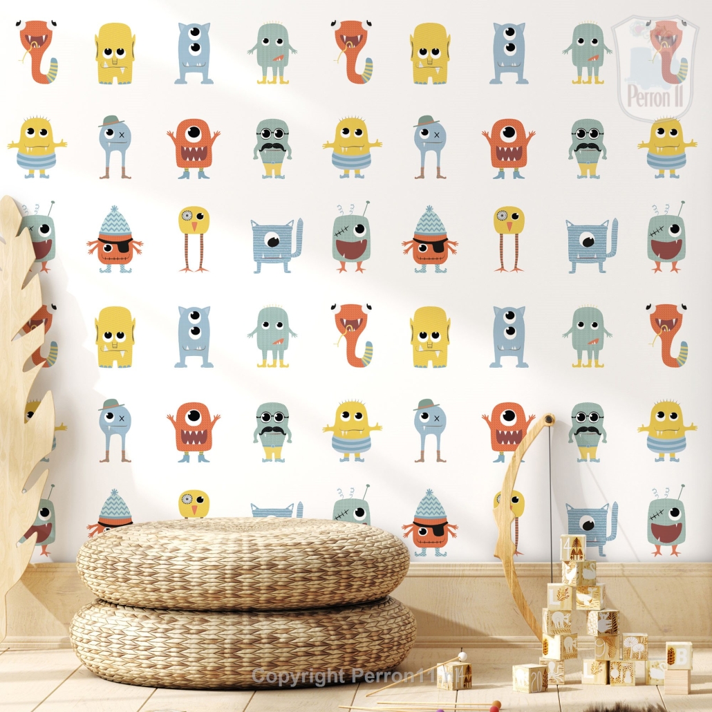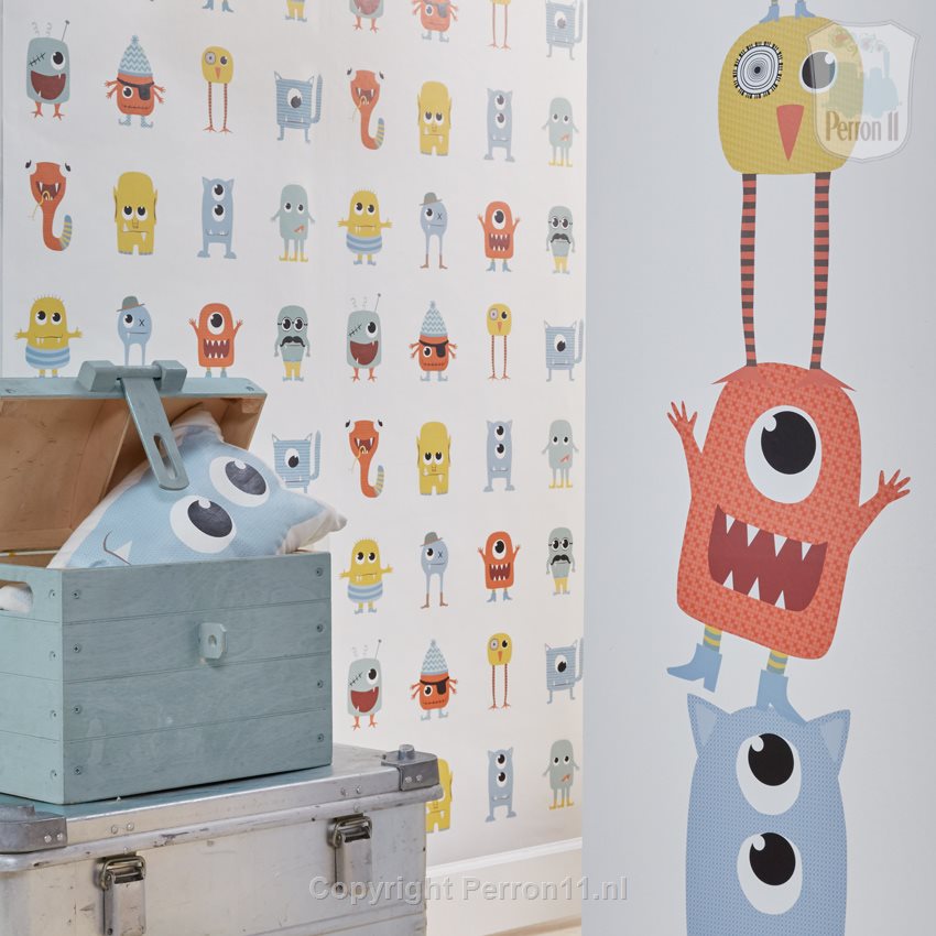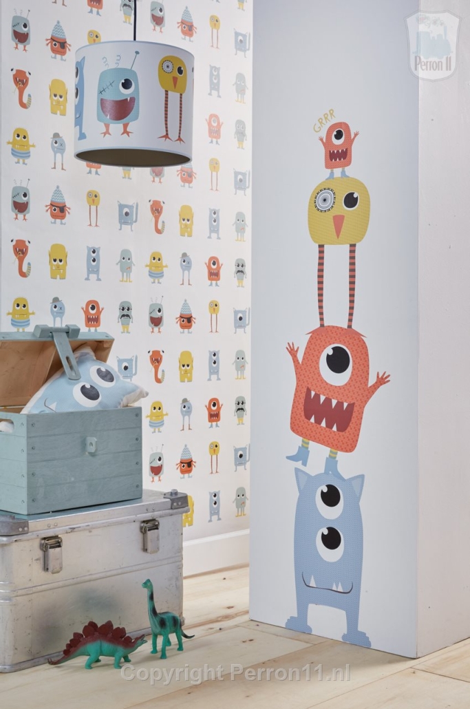 Het monsterbehang Ploe en de Monstermakkers brengt je kinderkamer tot leven! De monsters zijn lief en grappig, en ze jagen enge monsters uit de kinderkamer. Leuk voor stoere jongens én meiden !