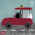 Vrolijk je kinderkamer op met deze poster van een stel katten in een taxie van illustrator Jennifer van der Wal. Leuk voor de baby- of kinderkamer!