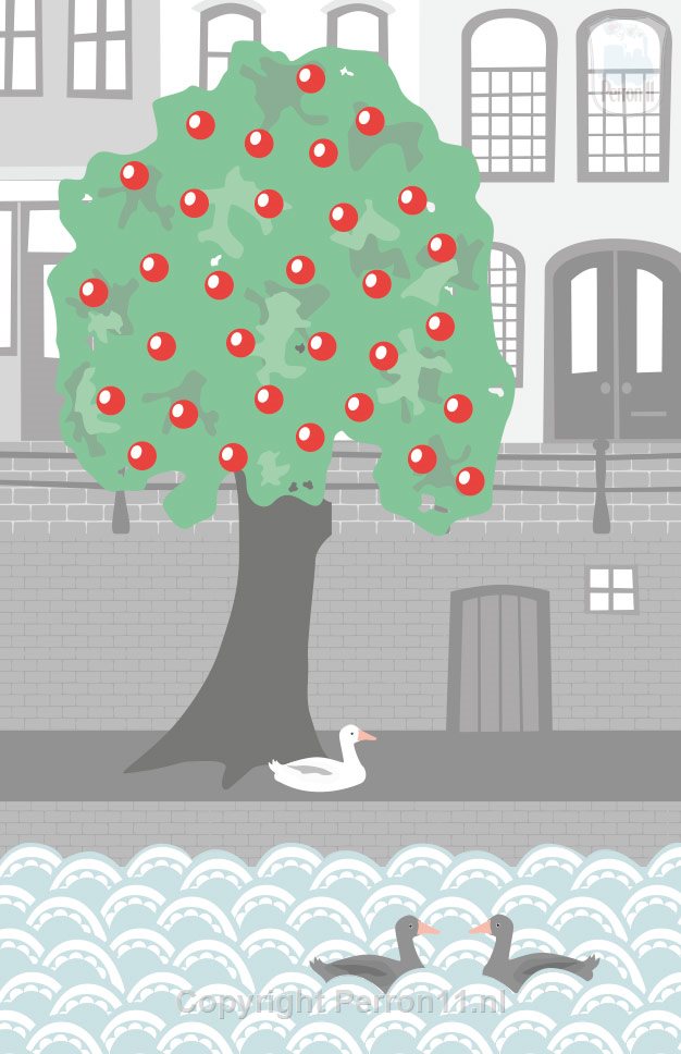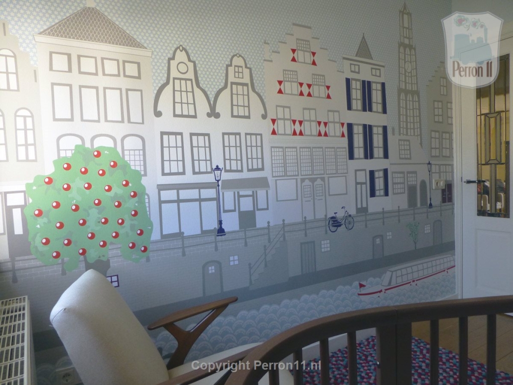 Wil je het posterbehang nog leuker en persoonlijker maken? Dan kun je zonder meerprijs kiezen voor één of meer extra opties, zoals een boom met appeltjes, een rondvaartboot op de gracht of een vliegtuig (eventueel met de naam van jouw kindje) in de lucht. Ook kun je naar keuze eendjes, katten, luchtballonnen en een klimop toevoegen. Bekijk de voorbeelden voor nog meer inspiratie! Het maakt voor de prijs niet uit hoeveel opties je uit onderstaande keuzelijst selecteert.