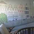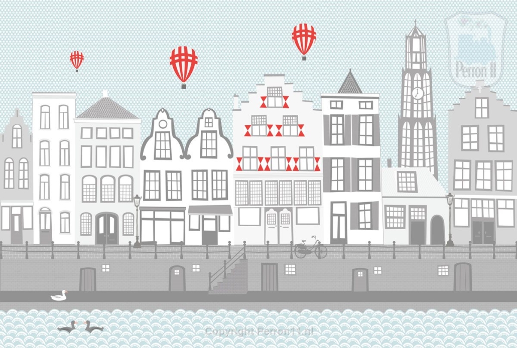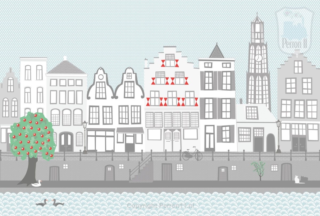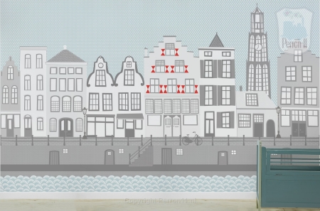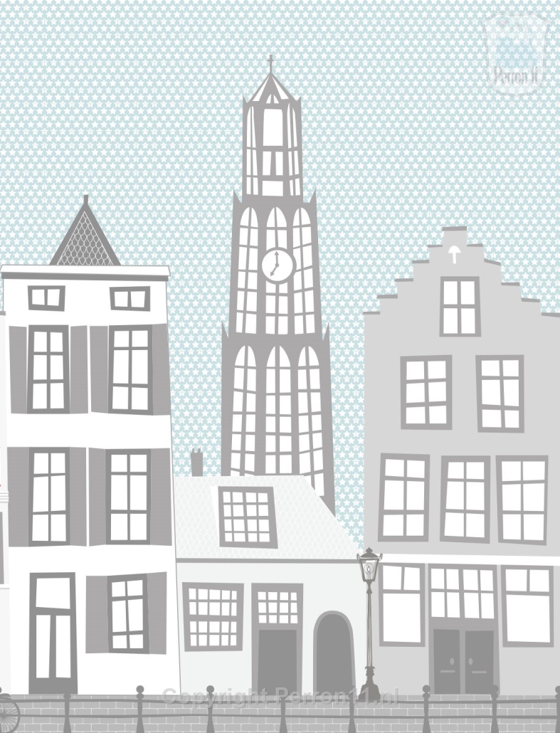 Breng je babykamer of kinderkamer in Utrechtse sferen met deze huisjes langs de Oudegracht. De basisafbeelding op dit behang bestaat uit de Utrechtse huisjes met de Domtoren, de gracht, een fiets en lantaarnpalen. Wil je het behang wat meer personaliseren, dan kun je een aantal extra opties kiezen (zie hieronder). We passen dit behang trouwens altijd gratis aan de maat van jouw eigen muur aan. Indien gewenst veranderen we ook de compositie, zodat de huisjes precies in jouw kamer passen. En wil je liever een andere kleur? Ook dat kan! In het keuzemenu hieronder vind je alle mogelijkheden.
