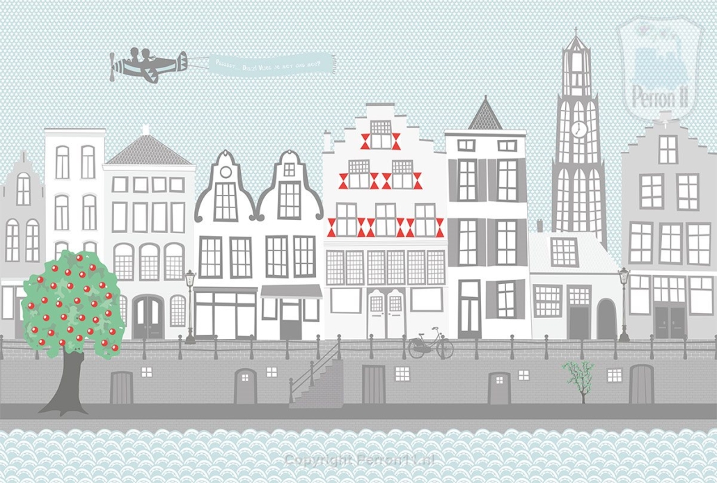 Behang Amsterdam delfts blauw of grijs met extra opties