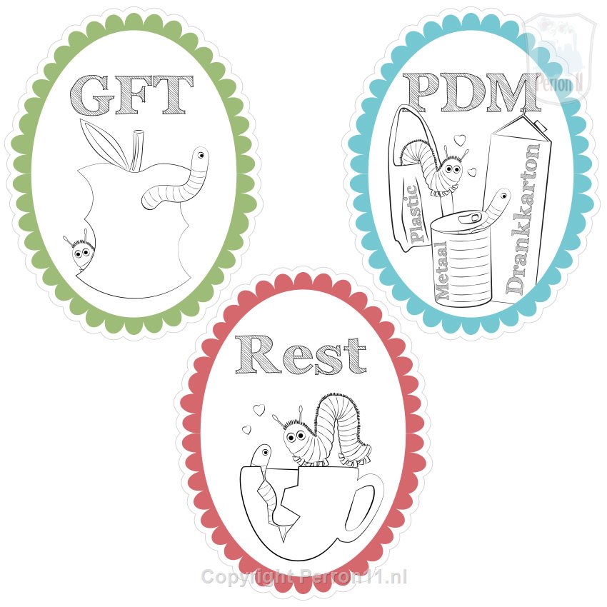 Met deze set van drie stickers maak je afvalscheiden leuk en overzichtelijk! Je plakt ze eenvoudig op de afvalbakken in je keuken voor GFT (groente, fruit en tuinafval), PDM (plastic, drankkarton en metaal) en restafval. Dankzij de drie kleuren en vrolijke illustraties van Romy de Rups en Wonky de Worm zijn ze in één oogopslag te herkennen. Makkelijk voor jezelf, maar ook handig om je kinderen op een leuke manier te leren afval te scheiden en zo bij te dragen aan een beter milieu.