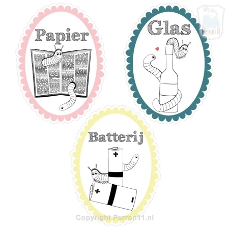 Stickers voor afvalscheiding 2 set van 3 stuks