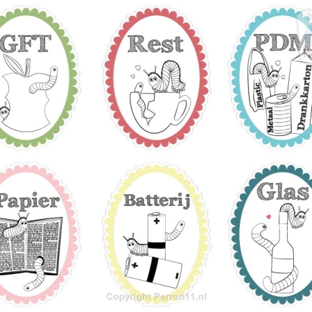 Stickers voor afvalscheiding voordeelset van 6 stuks