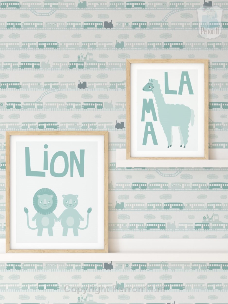 Het patroon bevat veel details: in de treintjes zitten allerlei diertjes zoals aapjes, leeuwen, olifanten, giraffen en lama's. Leuk om samen met je kindje op onderzoek te gaan en alle dieren te ontdekken! De dieren zitten soms in de trein of staan op een stationnetje. Ook zijn er verschillende wissels en tussensporen op het behang te zien, waardoor jouw kind kan bedenken welke route de treintjes rijden. Het patroon van dit behang is heel groot en loopt over maar liefst twee banen door. Er is dus enorm veel te zien, terwijl het behang dankzij de zachte ton-sur-ton kleurtjes toch heel rustig oogt.