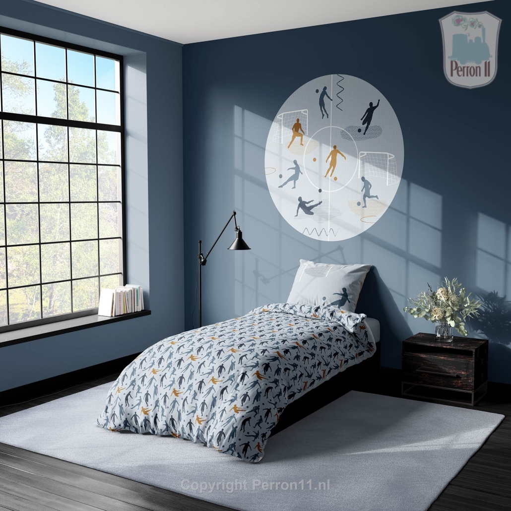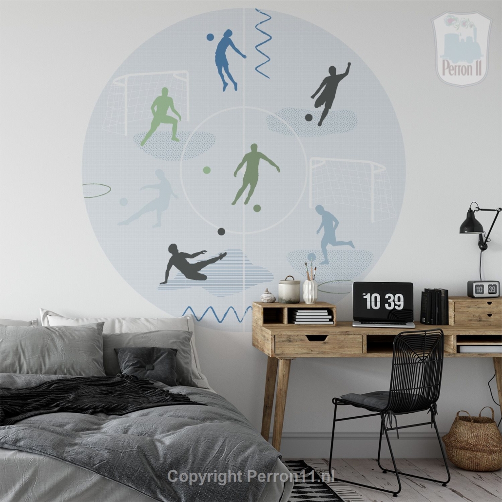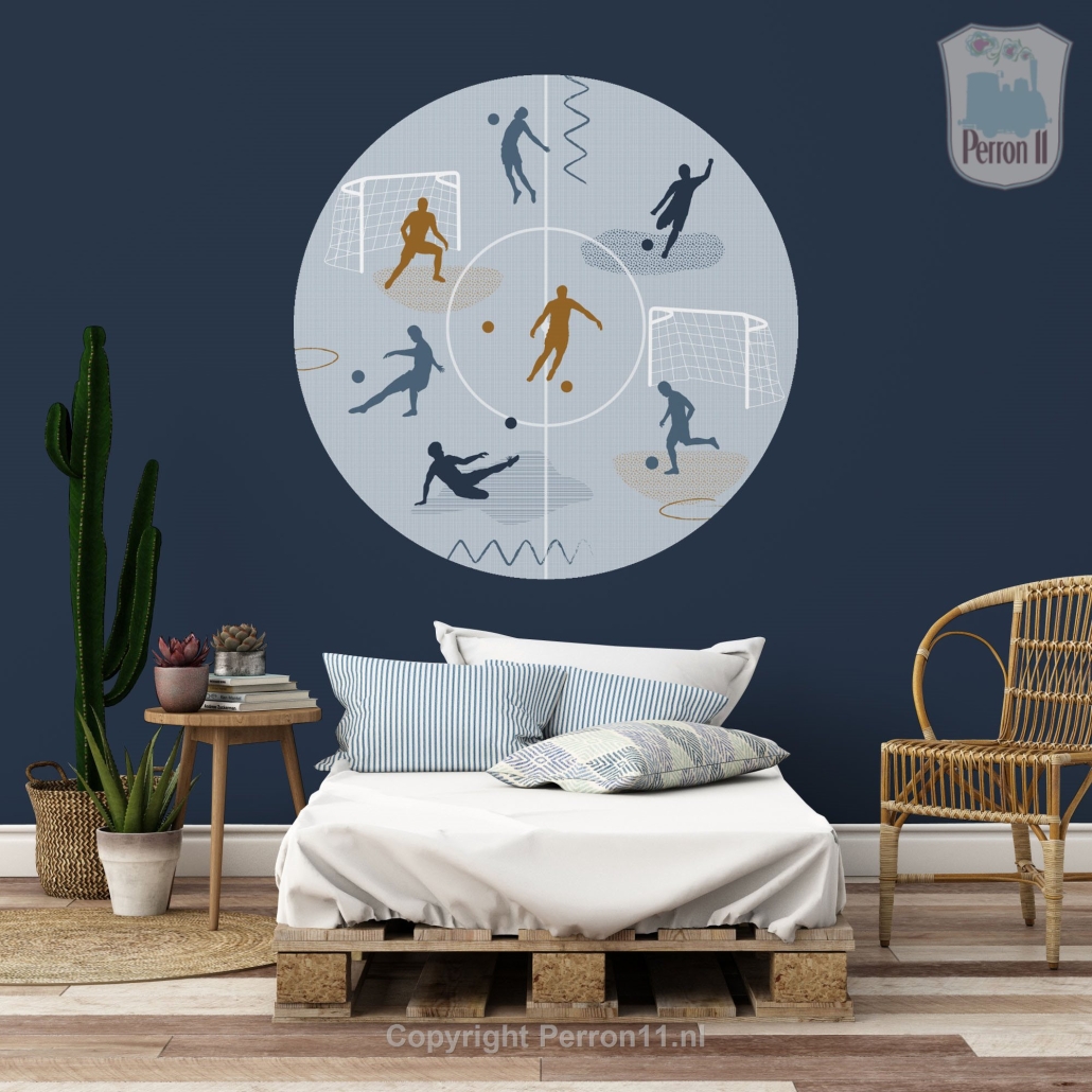 Coole voetbal wandcirkel voor stoere jongens die van voetbal houden. Deze wandcirkel met silhouetten van voetballers past perfect bij ons voetbal patroonbehang , ons voetbal fotobehang en ons voetbal dekbedovertrek . Leuk om te combineren tot een stoere voetbalkamer, maar ook mooi als losse wandcirkel. Je kiest zelf de maat en het materiaal. Wil je een voetbal muursticker, behangcirkel of een 3D-object in stoer re-board of strak dibond (scrol voor materiaal informatie naar beneden)? Deze voetbal wandcirkel is verkrijgbaar in licht- en donkerblauw en beige - dezelfde kleuren als ons voetbalbehang.