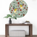 Deze wandcirkel met vogels en bloemen is verkrijgbaar met drie verschillende achtergrondkleuren: groen, (gebroken) wit en zwart. Dit zijn dezelfde kleuren als het bijpassende behang Klaproos . Alle drie de achtergrondkleuren komen terug in het basis kleurenschema van deze collectie, waardoor je alle items onderling kunt combineren. Dus combineer gerust het groene behang met de zwarte wandcirkel, of het zwarte behang met de witte behangcirkel. Kan allemaal! Ook matcht deze wandcirkel met de andere behangontwerpen uit deze collectie of met het dekbedovertrek.