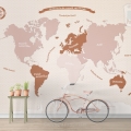 Wereldkaart behang roze en roestkleur met diverse achtergronden