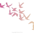 Geef je kamer een mooie, gedurfde uitstraling met deze vogelzwerm mural. In deze mural zit een kleurverloop, ook wel ombre. Super hip en gedurfd op de muur. Laat de vogelzwerm langs de bank, kast of het bed vliegen voor een super originele kamer!