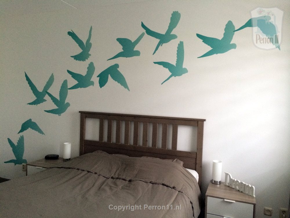 Geef je slaapkamer een mooie, hippe uitstraling met deze vogels mural. In deze mural zit een kleurverloop, ook wel ombre. Niet alleen heel erg hip, ook nog eens leuk te combineren met turquoise accessoires. Laat de vogels over de bank, kast of het bed vliegen voor een super originele kamer! Ook heel leuk voor de woonkamer, hal of tienerkamer.